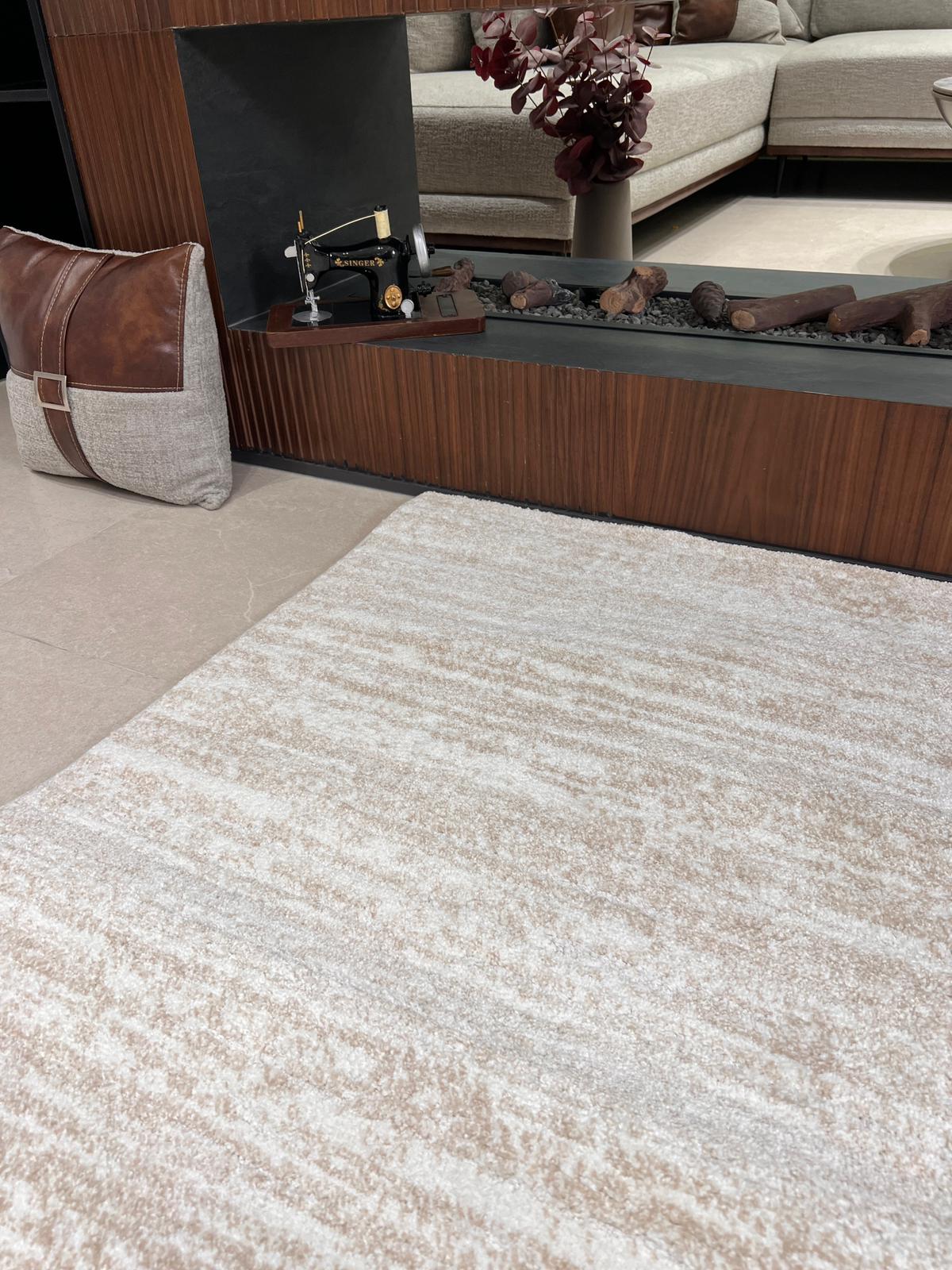 سجادة باللون الكريمي وبتصميم حصري يوازن بين الفخامة، الراحة، ولمسة عصرية أنيقة .