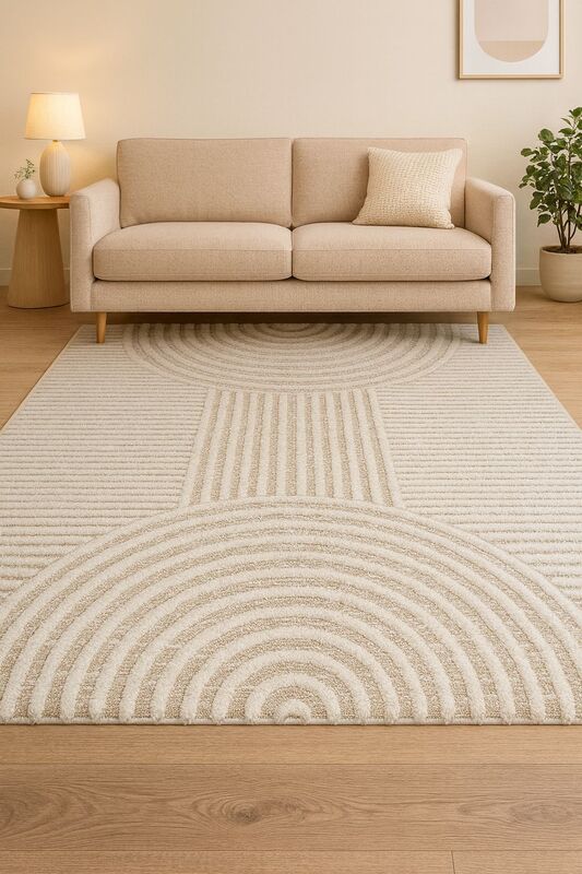 שטיח מודרני בעיצוב גיאומטרי מודגש שמוסיף נגיעה של רוגע ופשטות לכל חדר. שילוב שני הצבעים בו נותן תחושה של מרחב ונוחות, אידיאלי לסלון או לחדר שינה.