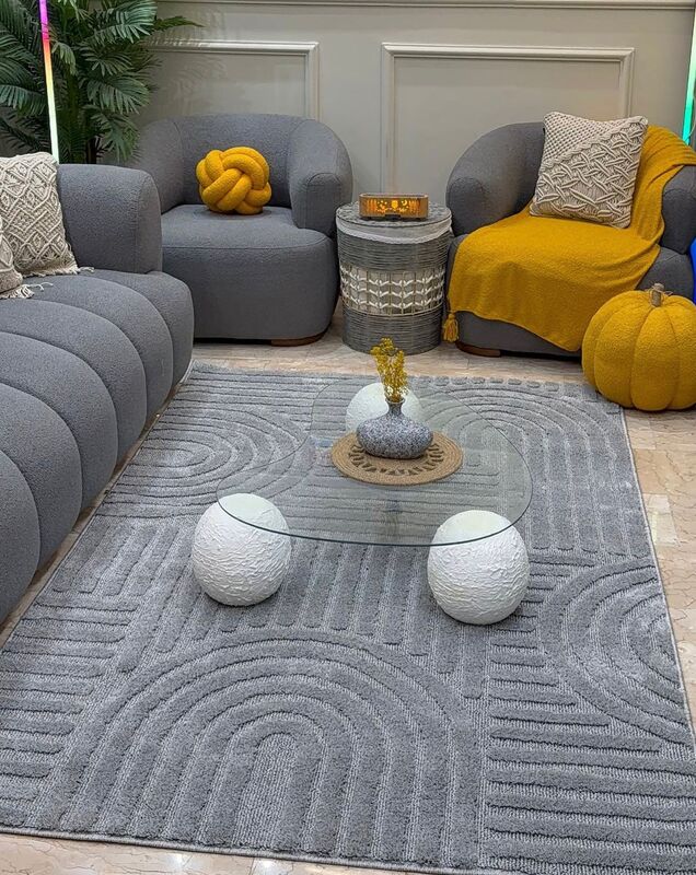שטיח בצבע אפור מודרני עם דוגמה בולטת שמעניק למקום נגיעה עדכנית ואלגנטית. אידיאלי למרחבים מודרניים ומעניק איזון בין יופי לפונקציונליות.